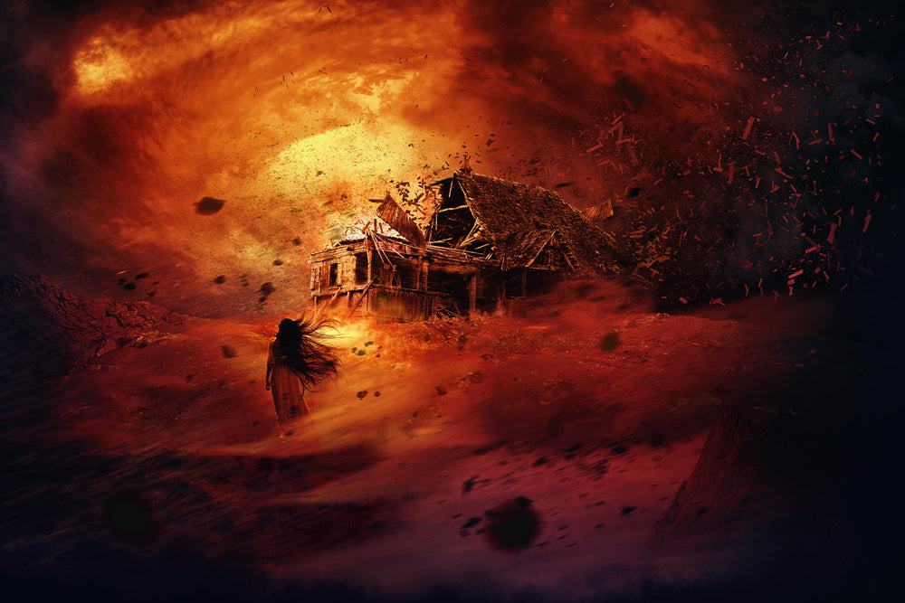 Feuersturm Bildmontage aus diversen Fotos als Fotoposter in einem robusten, leicht demontierbaren Wechselrahmen.